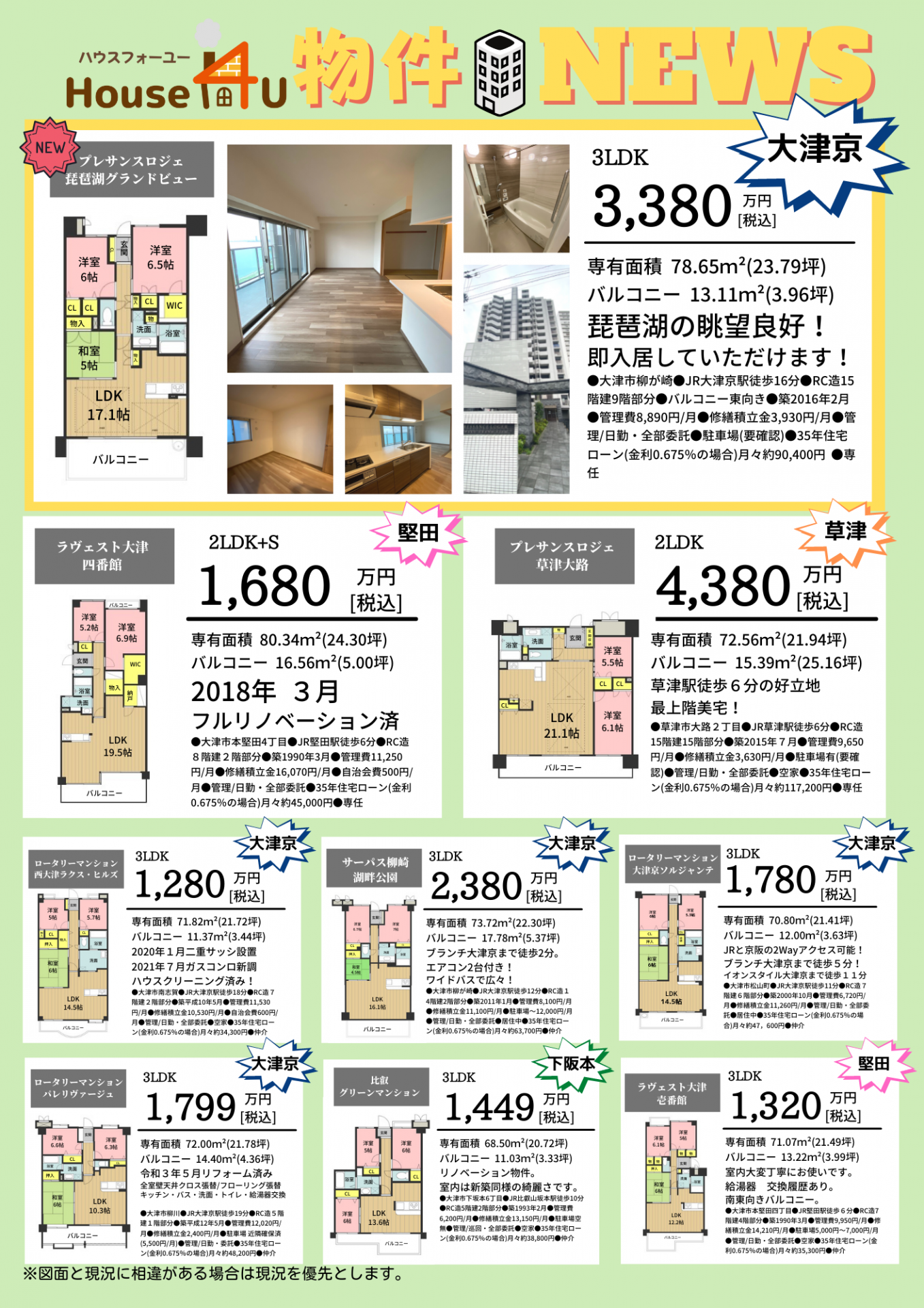 【JR大津京駅】物件情報|ルネ大津皇子が丘ロイヤルビュー 住所:大津市茶が崎JR湖西線「大津京駅」徒歩12分◆JRと京阪の2Wayアクセス可能・京阪石山坂本線「大津京駅」徒歩11分◆15階建の11階の高層階3LDK!◆琵琶湖の眺望抜群で琵琶湖花火大会も鑑賞できます。◆日…
