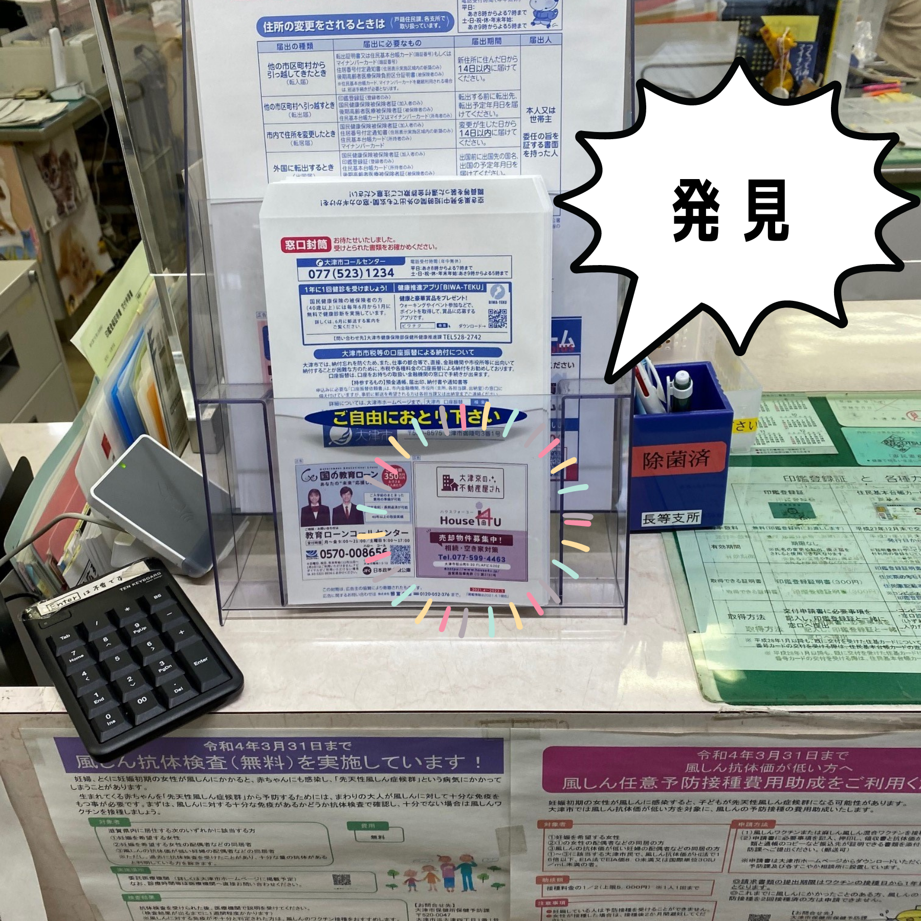 先日ですが事務所の近くの市役所に用事で出かけた時にチェックしてみたら・・・しっかりと弊社の広告が置いてありました。地元、地域密着の会社ですし少しでも大津市の方に弊社を知って頂ければとの思い…